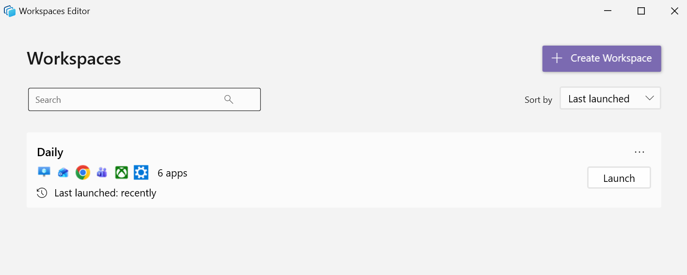 Win + Ctrl + 'to open the Workspaces editor (or go to Settings and click "Launch editor"). - Click "+ Create workspace".